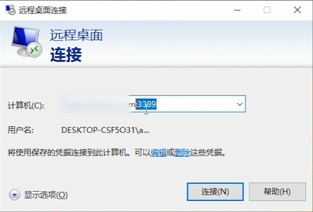 7. 在跨网络连接时,使用公网IP或域名加端口3389连接即可。