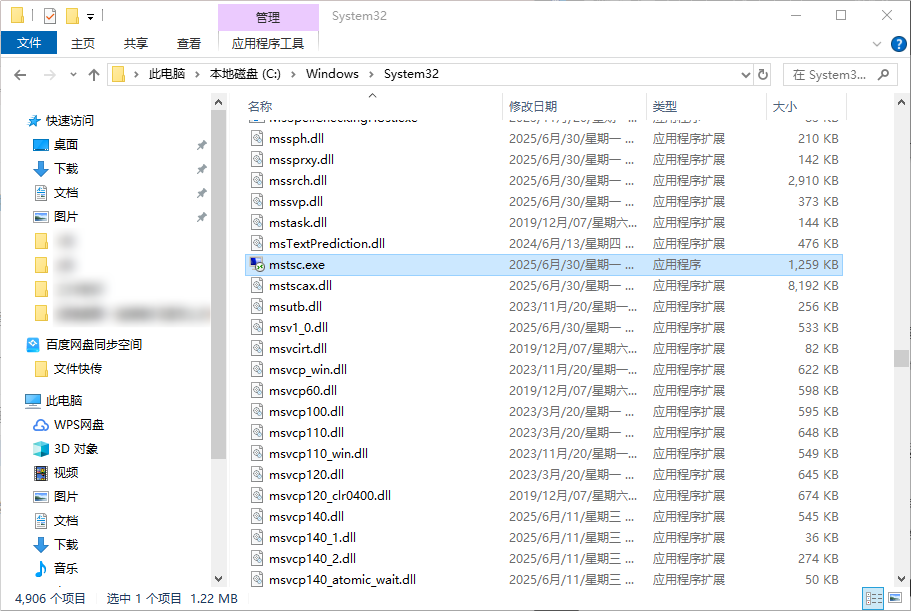 2. 在此电脑中,手动定位到 C:\Windows\System32 搜索查看是否有mstsc.exe。