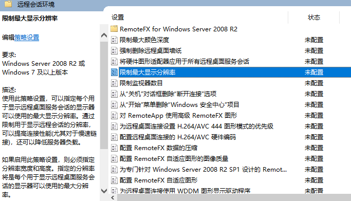 查看策略“限制最大显示分辨率”是否已启用,如果启用请调整为禁用。