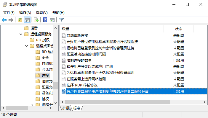 计算机配置 → 管理模板 → Windows 组件 → 远程桌面服务 → 远程桌面会话主机 → 连接