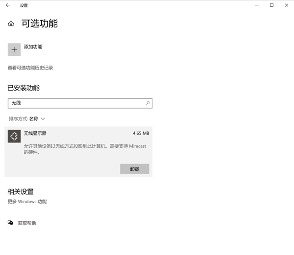 4. 在搜索框中输入 “无线显示器”,勾选后点击安装。