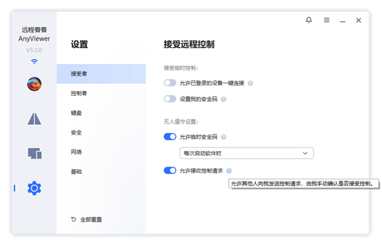 - 明确显示当前是否被远程连接(弹窗提醒是否接受控制)