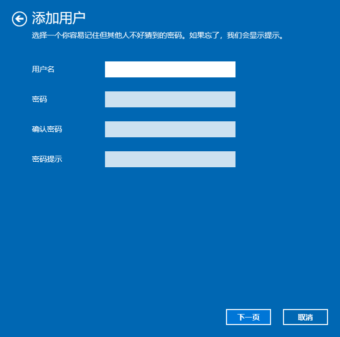 步骤2. 设置新的本地帐户凭据,包括用户名、密码和提示密码。