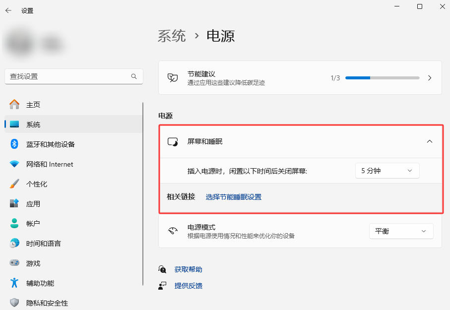 Win11:Win + I打开设置 → 系统 → 电源 → 屏幕和睡眠