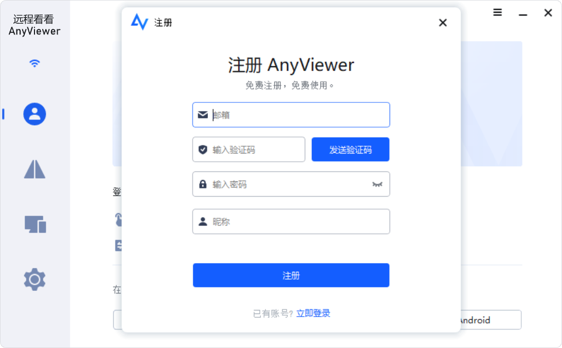 在两台设备上下载、安装并打开 远程看看(AnyViewer)。 转至登录并注册 远程看看(AnyViewer)。