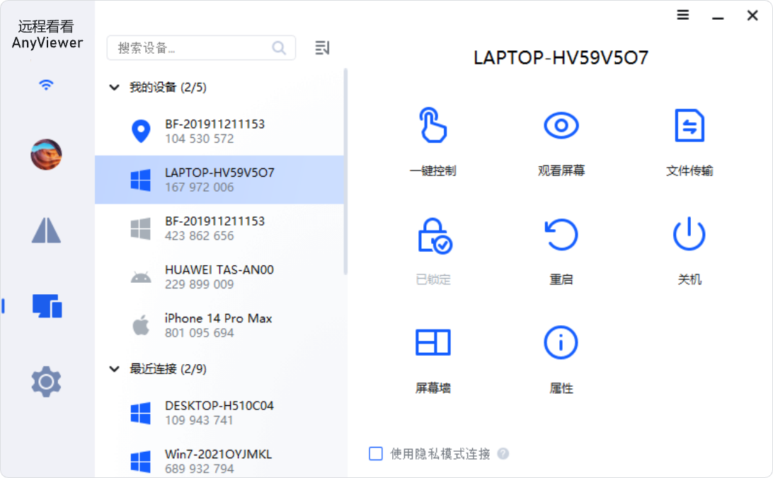 远程看看(AnyViewer)使您能够远程完全控制电脑。 您可以通过本地设备灵活方便地重启/关闭远程电脑。